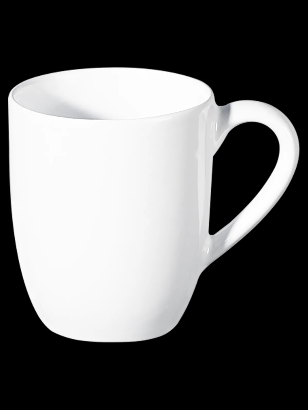 Großer weißer Henkelbecher aus der Geschirrkollektion grande. Mit einem Durchmesser von 9,5 cm und einer Höhe von 11 cm hat dieser große Becher mit Henkel ein Fassungsvermögen von 0,5 l. Genug Platz für viel heißen Kaffee, einen gemütlichen Kakao oder beruhigenden Tee. Das hochglänzende weiße Porzellan passt harmonisch zum schlichten und zurückhaltenden Design des Henkelbechers.